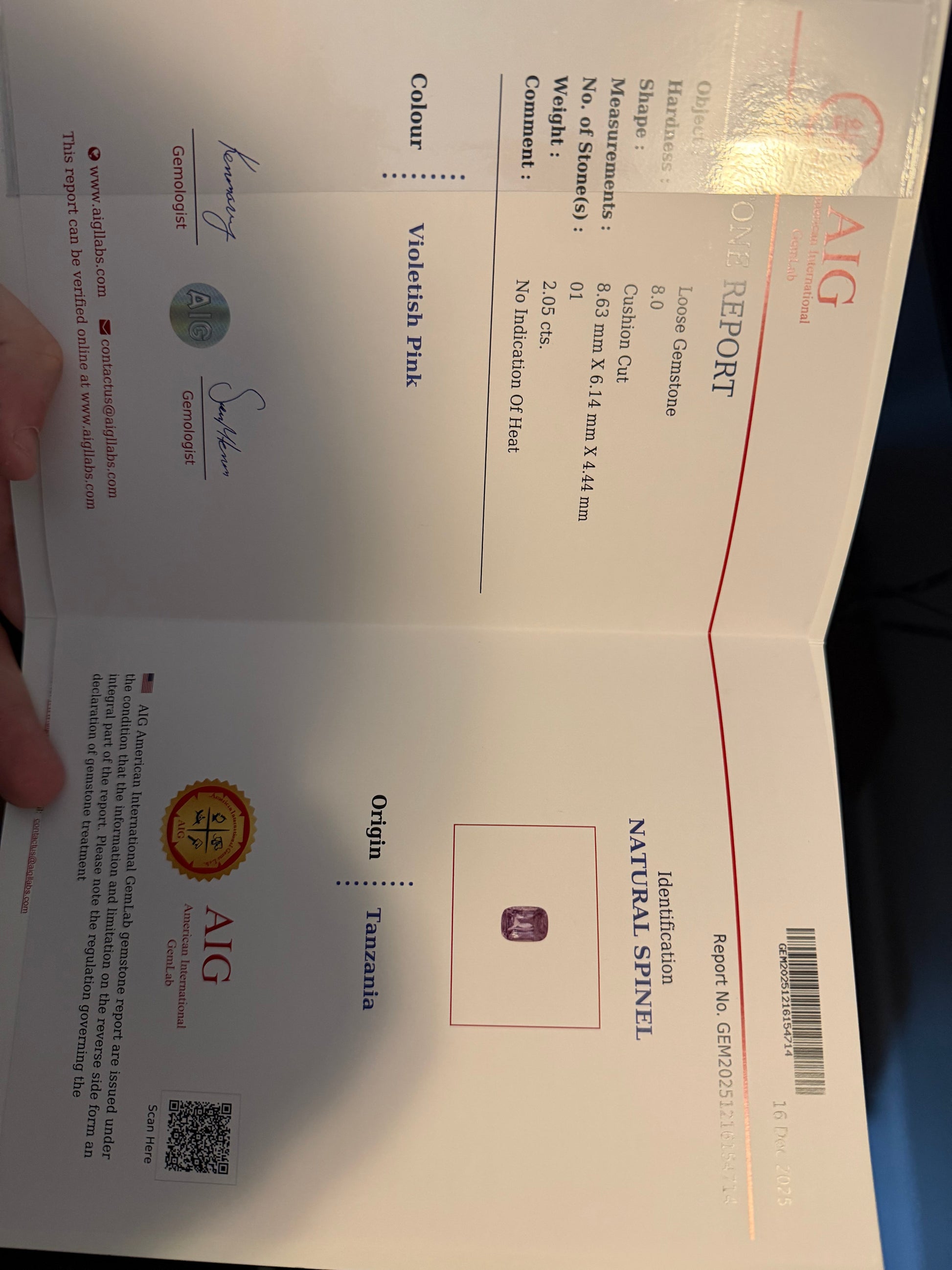 2.04 Ct Violet Pink Spinel with Cert.